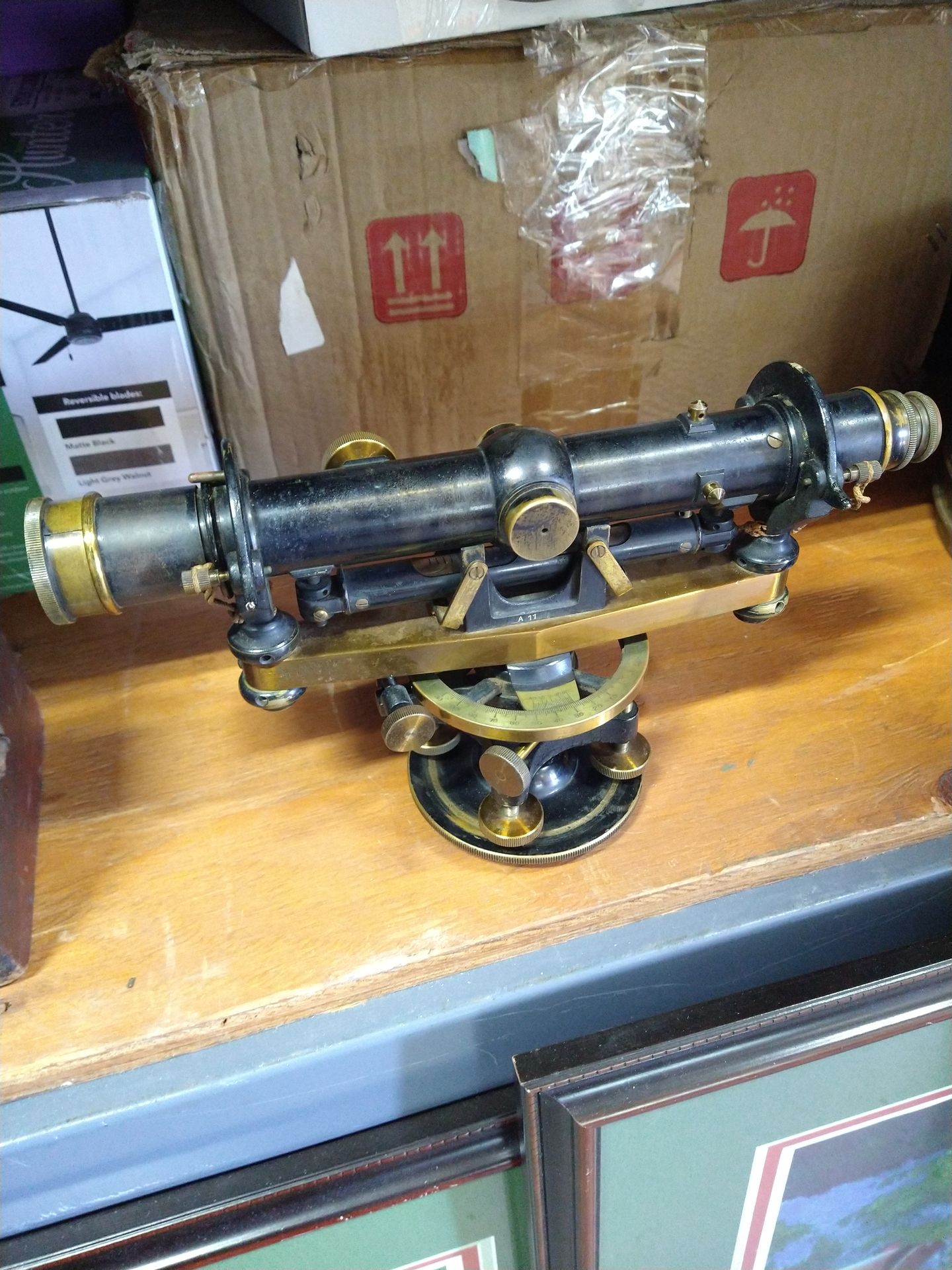 2 different antique survey scopes and boxes