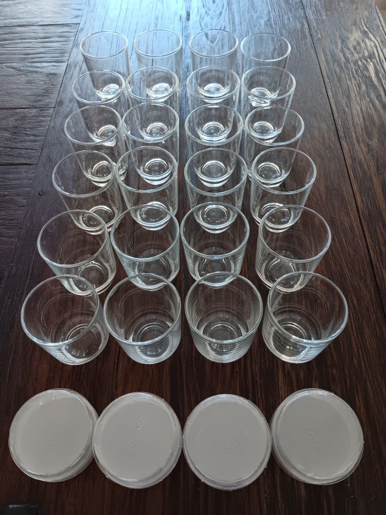 🌻 New 24 Piece Bundle 4oz Glass Cups w Lids Desert Cups Shot Glasses Baby Food