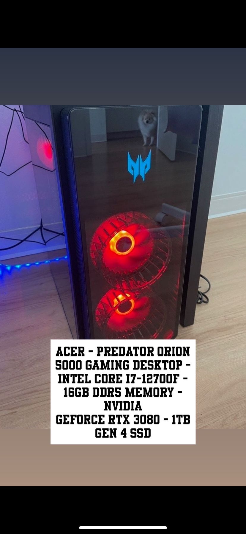 ACER - PREDATOR ORION 5000 GAMING DESKTOP - INTEL CORE 17-12700F - 16GB DDRS MEMORY - NVIDIA GEFORCE RTX 3080 - 1TB GEN 4 SSD