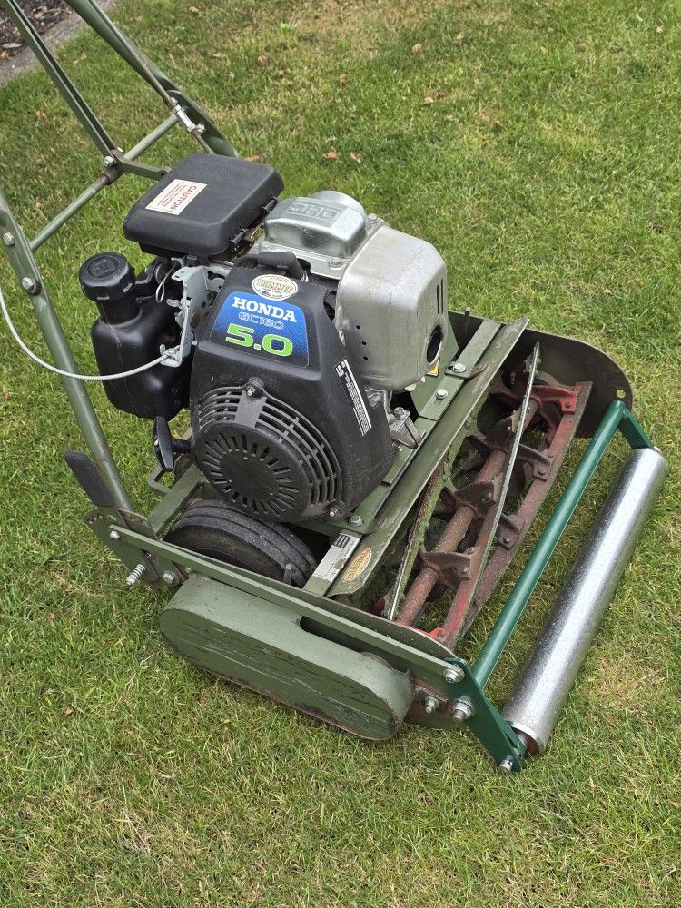 Runs like it looks. Sharp reel. Regular maintenance, oil, plug, filter. Stored in garage. Front roller, back lap kit and original front wheels included. $500 or best offer. New is $1349.