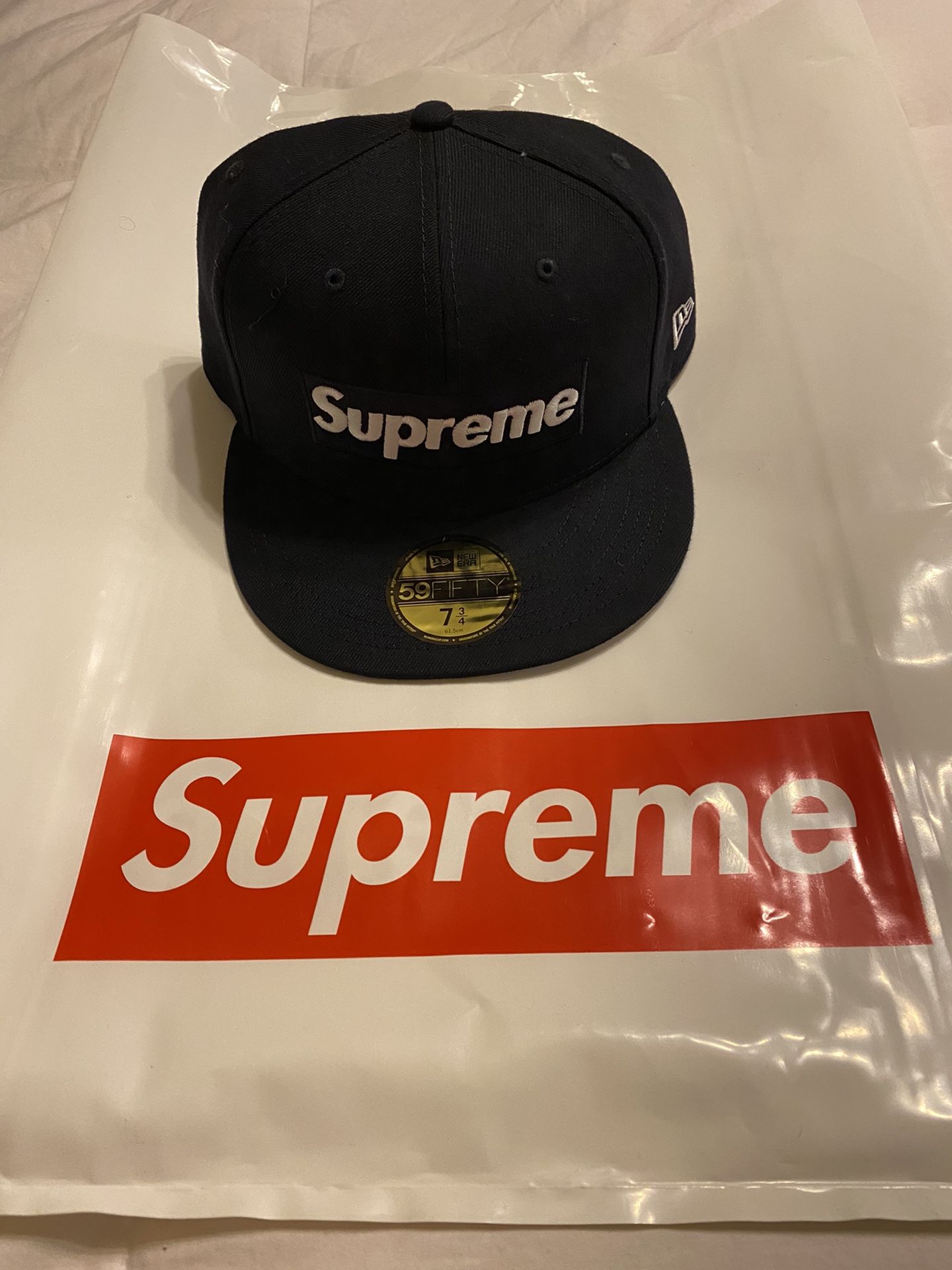 Supreme Champions Box Logo New Era fitted hat. Navy 7 3/4. 💯% Authentic purchased from Supreme LA. In hand.