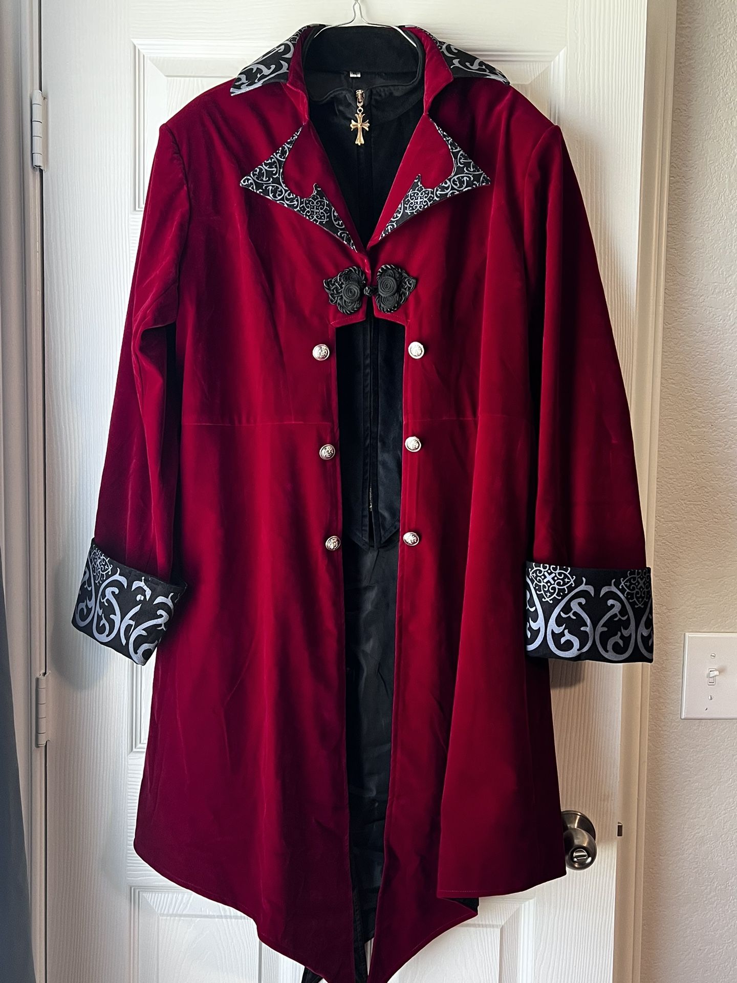 Brand new, never worn coat just in time for the renaissance festival or Halloween. Size: XL Local pick up only. Cash. Comes from a smoke free, pet free home. Renaissance, ren fest, faire, garb, pirate, vampire, goth, gothic, medieval, steampunk, Halloween, coat, tailcoat, long coat