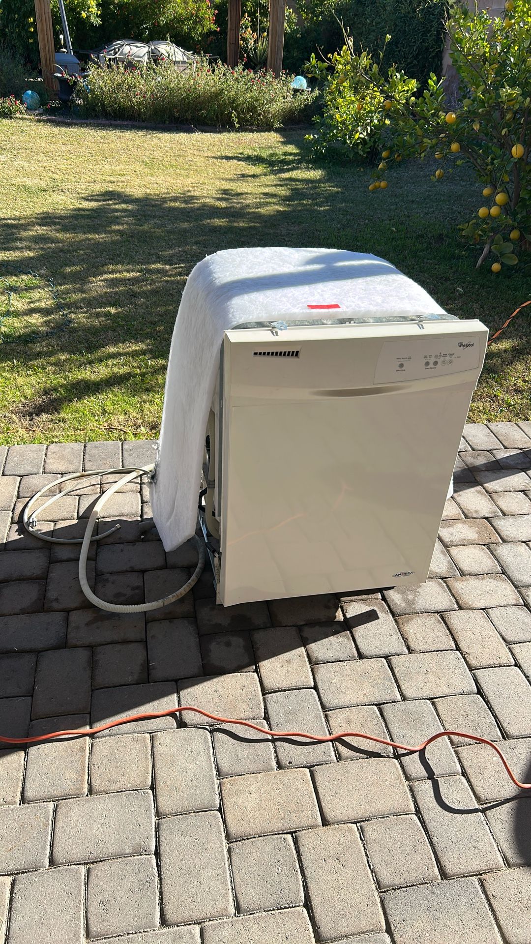 White dishwasher in a good condition, electric cord, water, hose, and dishwasher hose included. Helping to sell it for my friends he reported that dishwasher was working prior to removing from his house.