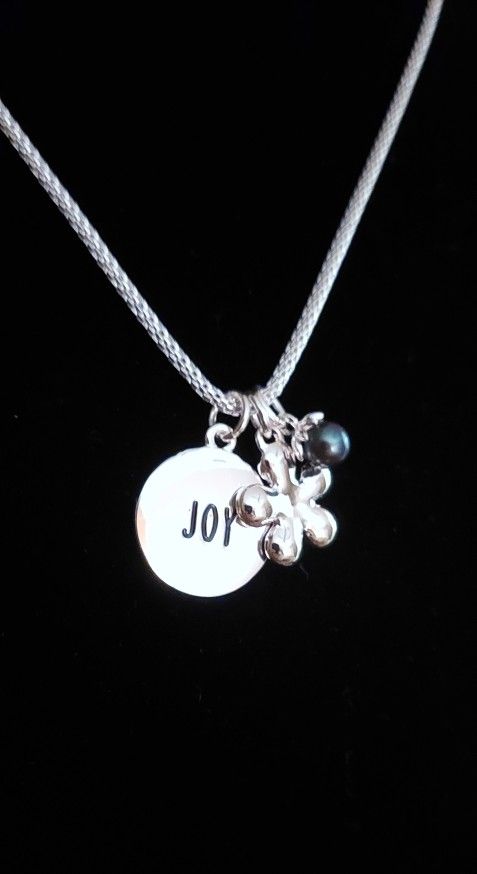 "Joy" Charm Necklace w/Freshwater Peacock Black Pearl (NWT)