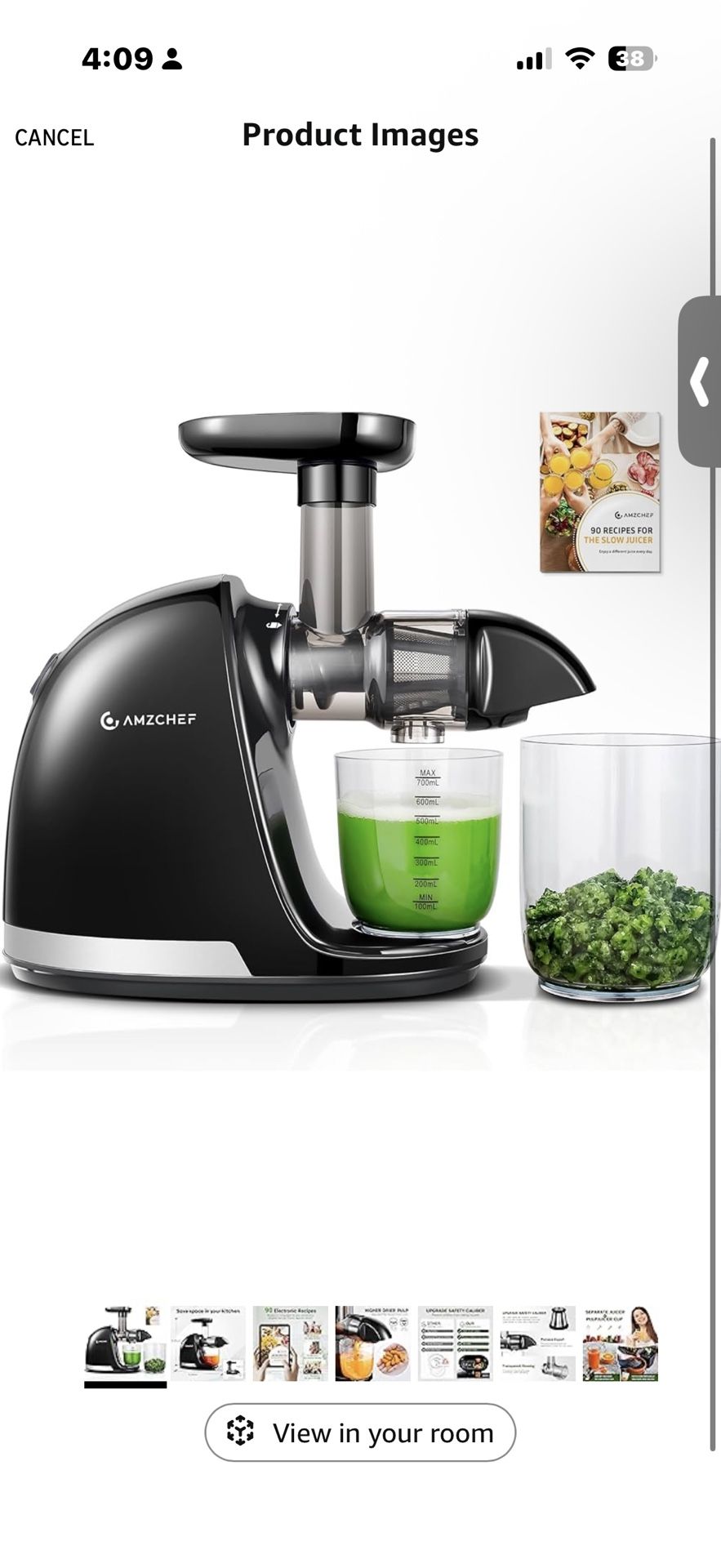 Cold Press Juicer Machines, AMZCHEF Slow Masticating Juicer with Reverse Function, High Juice Yield, Easy Clean with Brush, Recipes for High Nutrient