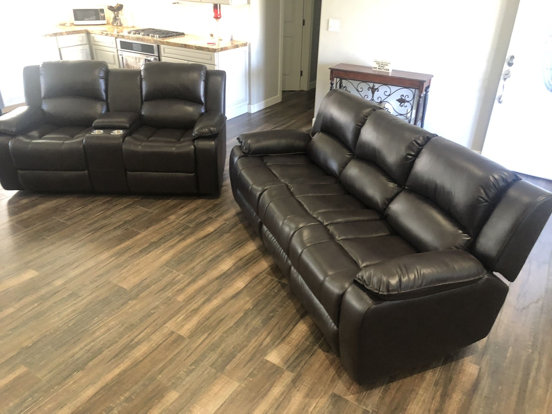 New Reclining Couch W Fold Down Console / Love Seat . Espresso Leather . Free Delivery !