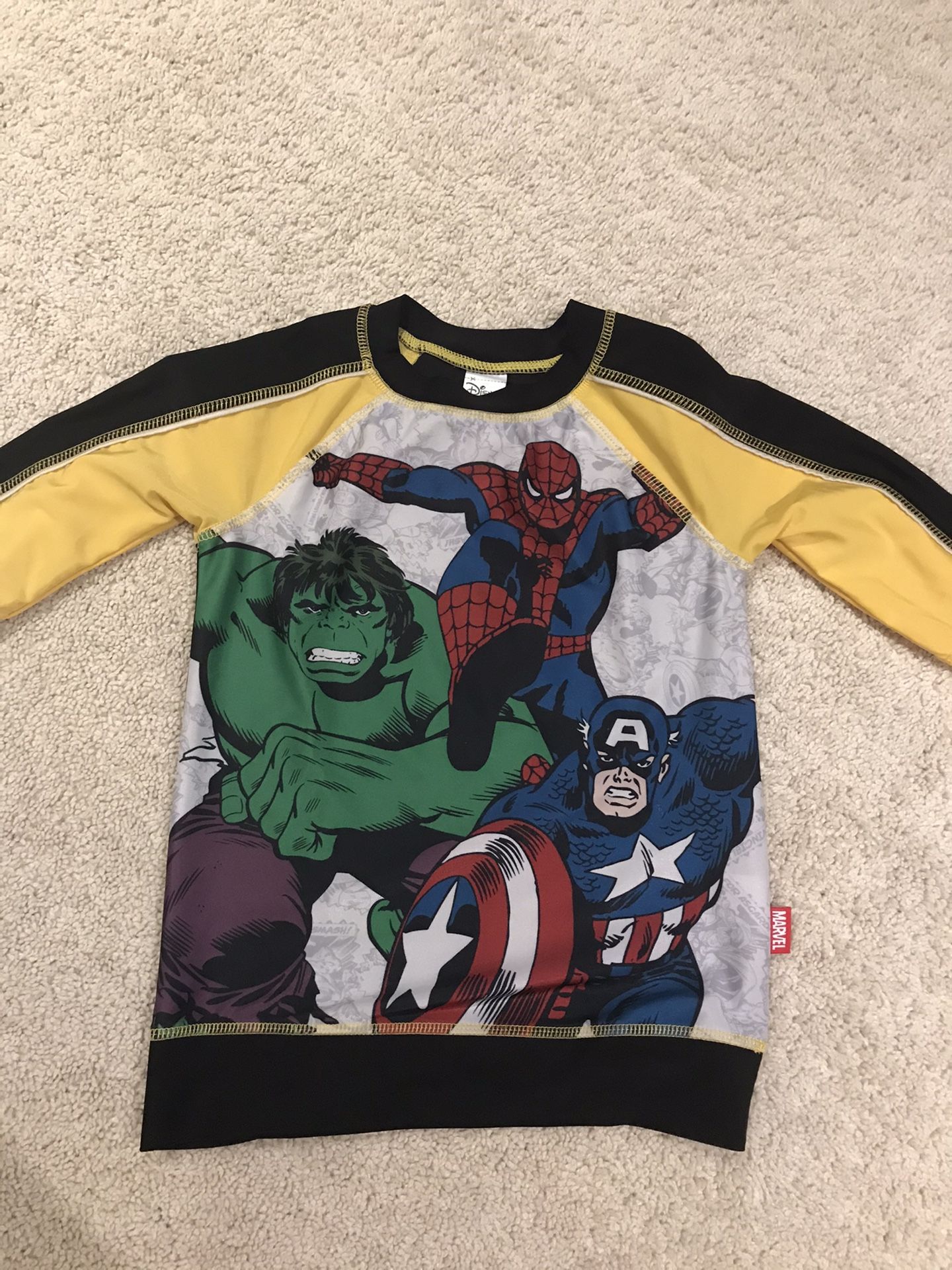 New with no tag. Disney brand swim top size 7/8 marvel characters. Disney Spring Summer Swim Rashguard Boy Top Gap