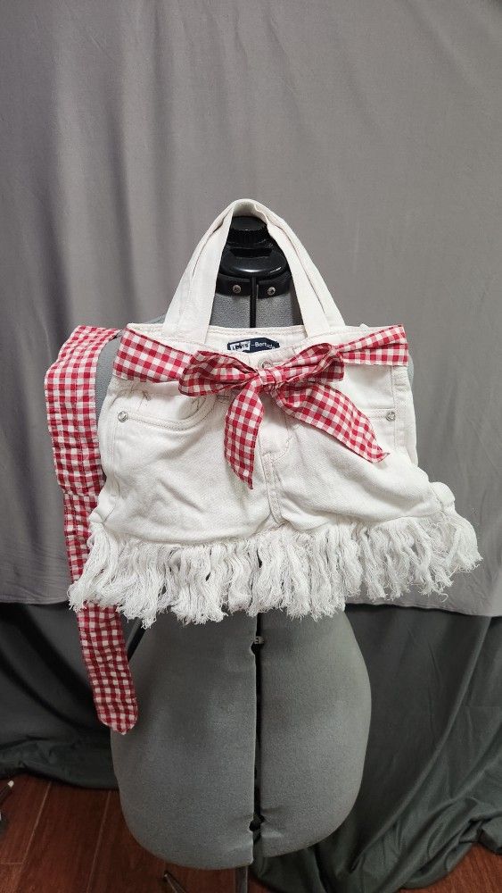 White red Denim bag, handbag, purse. Bohemian, hobo, hippie style.hand-made12x7.5 Made from white levi's jeans sz 10reg. made for kid's pageant as casual wear accessories. include matching hair band.