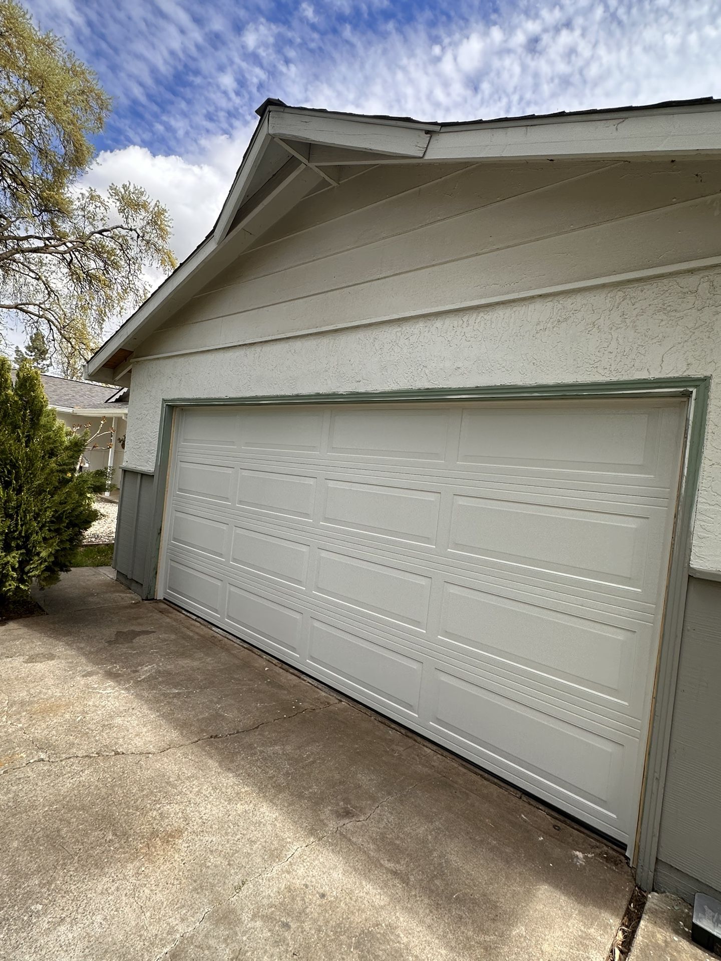 New garage door with new side mount opener. Smooth quiet and reliable! Dm for info