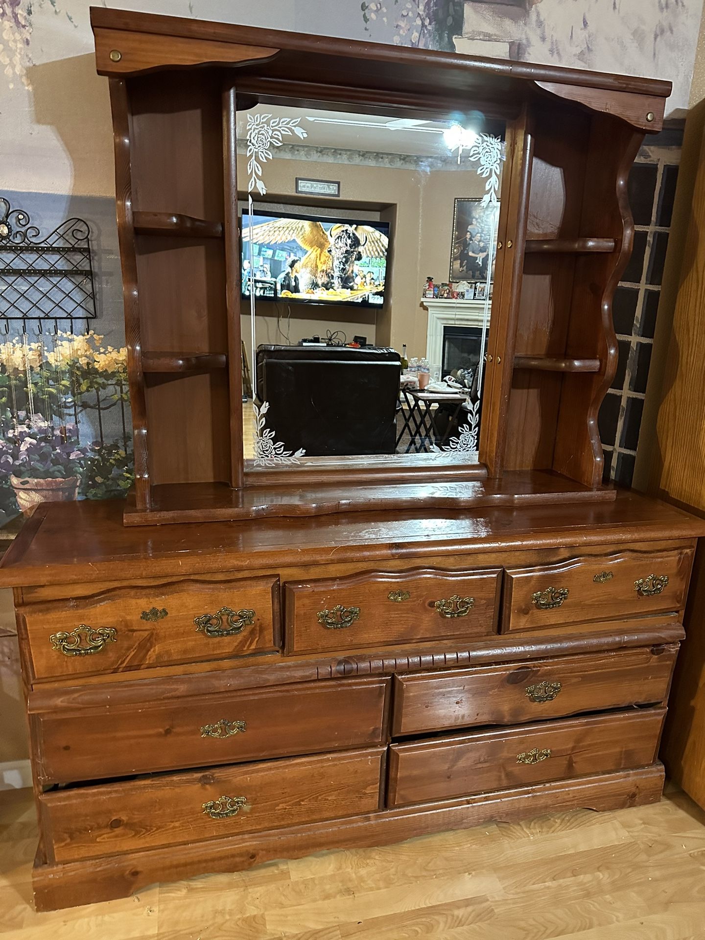Real Wood Dresser W/Hutch And Mirror