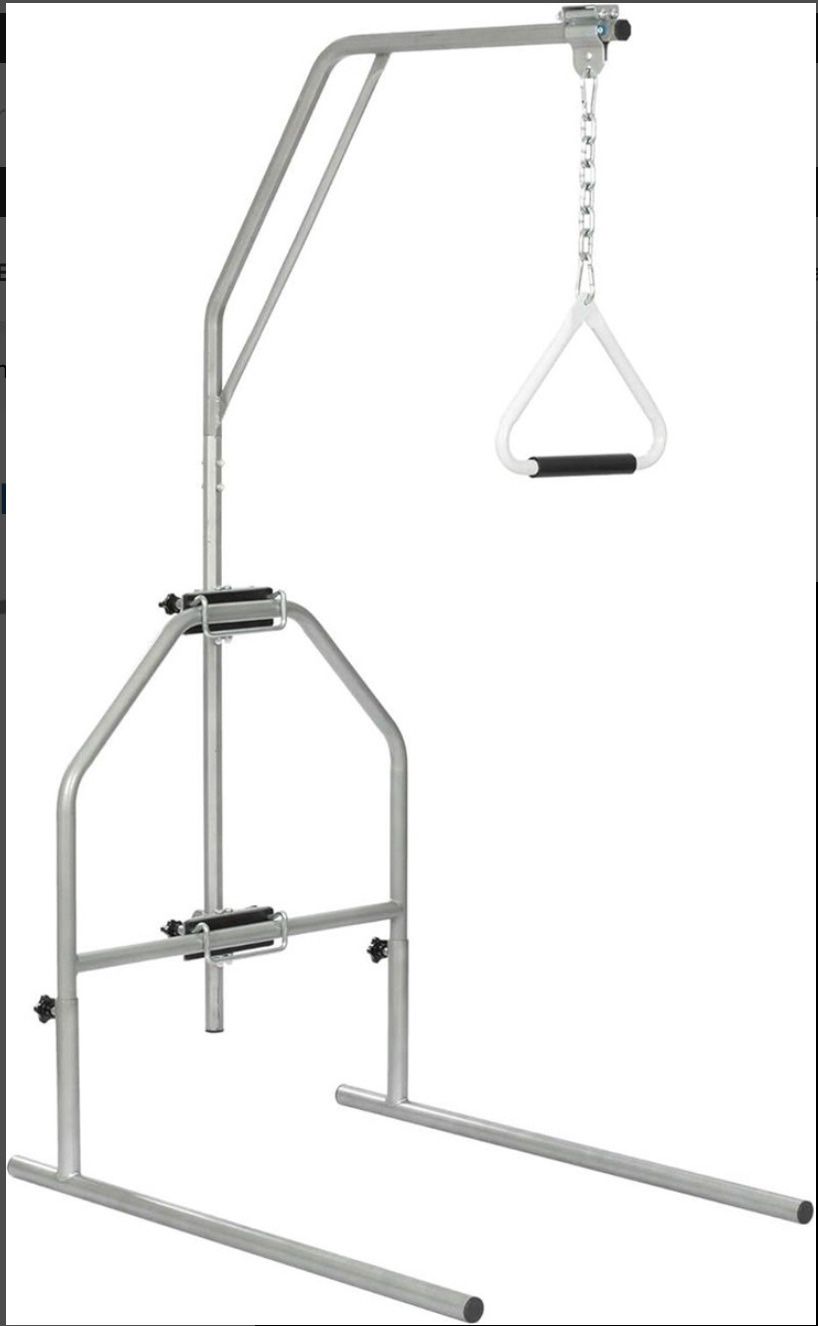 Standing Trapeze Bar, Assisting Patient and Elderly in Bed, Strong and Work Well. Condition: New(other) Damaged?: No In Packaging?: Yes Assembly Required?: Yes Missing Parts?: No Functional?: Yes Brand: RESTISLAND Title: $229 Trapeze Bar for Bed Mobility, Free Standing Trapeze Bar, Assisting Patient and Elderly in Bed, Strong and Work Well Designed For Safety: Safety is paramount when it comes to patient care. Our trapeze bar is designed to enhance patient safety and caregiver convenience, allowing the patient and elderly to reposition themselves and minimizing the help they require from a caregiver. As a versatile and essential aid, it can be used for various applications, including transfers, bed activities, exercise, and rehabilitation. Height Adjustable: The trapeze bar frame are height-adjustable to acommodate user of varying heights, positions, and physical capabilities. Sturdy & Stable: Bed trapeze bar is made of iron and aluminum, which is durable and can supports up to 400 lb. Two star stud knobs are firmly scewed to trapeze bar base to prevent shaking and improve stability. Portable Design: Bed trapeze bar comes with the required parts and can be quickly installed based on the instructions. Composed of 5 tubes, it is easy to store and transport after disassembly, thus saving space efficiently. Optional Bed Mount: The bar can also be mounted to headboards and footboards with a metal frame using the included clamps and hardware, minimizing the risk of displacement during transfer and repositioning.