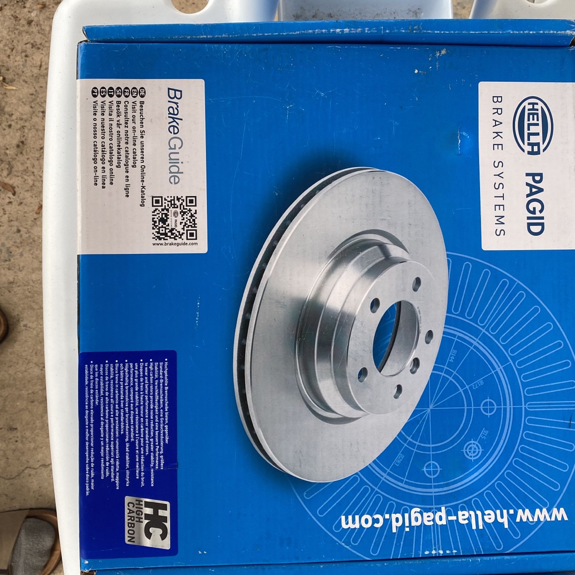 Two front wheel rotors for Audi A4 2015 with pads. Brand new never used. Still in factory seal packaging. Opened for pictures.
