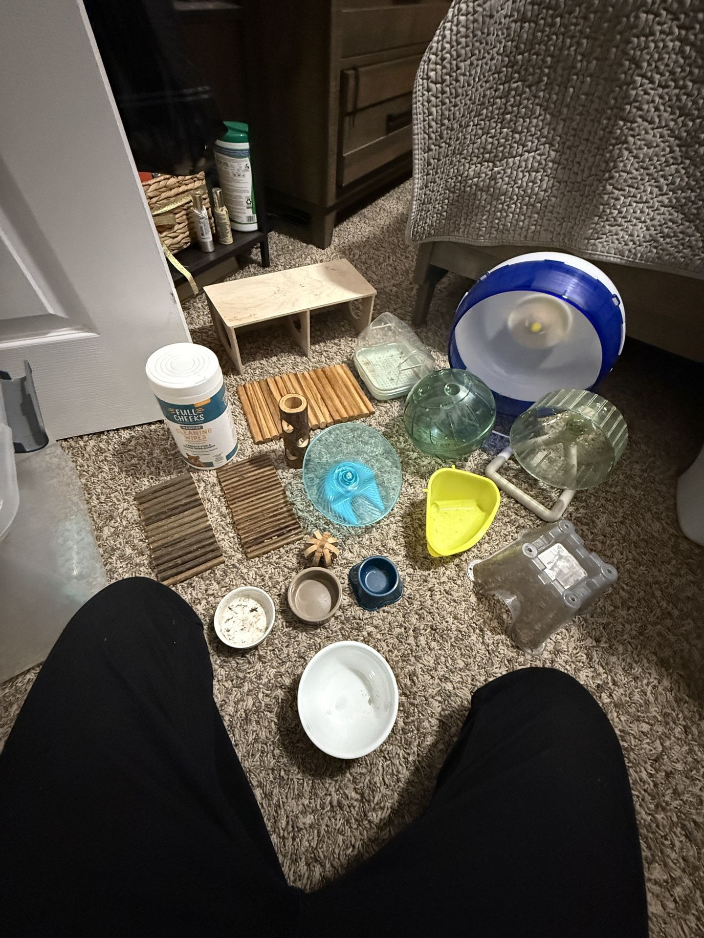 Selling Hamster supplies: Two tanks: 40 Gallon Breeder Tank; Glass lid Included 20 Gallon Tank *sides are chewed up so silicone needs to be redone if using for fish Supplies: Everything seen in picture, also comes with Garden Select Hamster food FOR EVERYTHING 100 , willing to negotiate on offer.