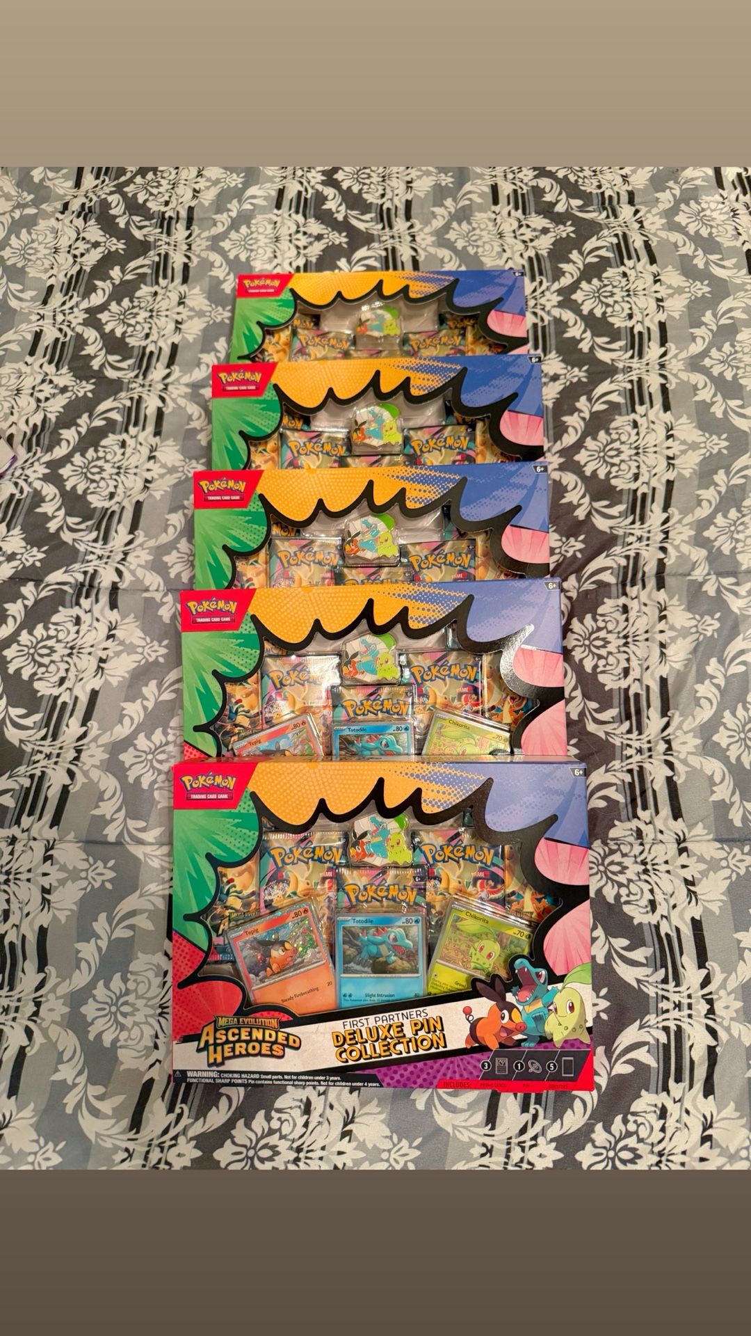 Looking to sell or trade Ascended Heroes Pin Collections. I like Pokemon Trainer Boxes or One Piece Booster Boxes. Take all for 230$ willing to meet whenever.