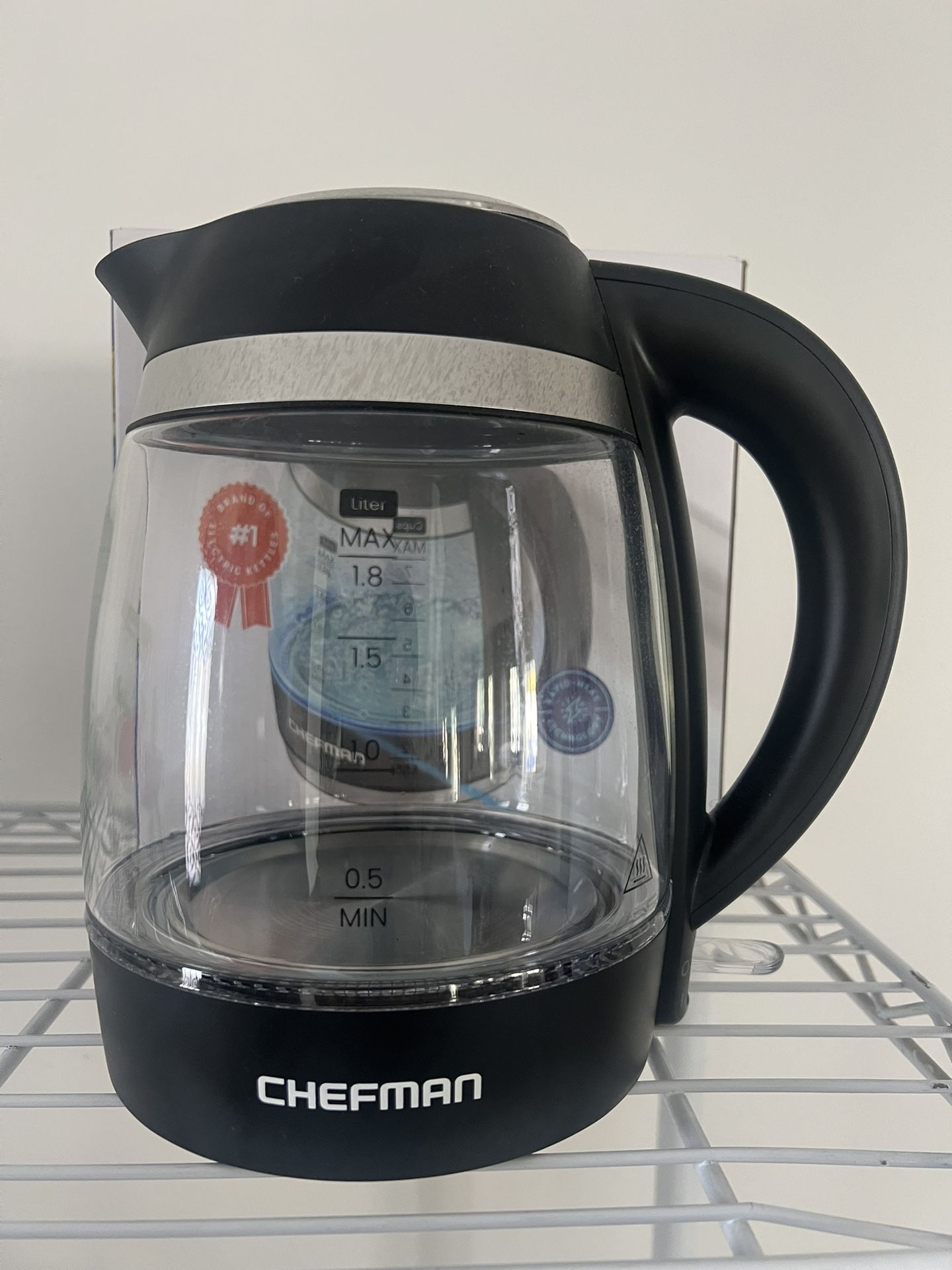 Brand new in box, ChefMan, fast boil electric kettle Hamilton Beach 6 speed burst mixer Zucchini pasta maker Glass Tupperware bowls with lids Office paper bins White linen napkins Buy all together or individually