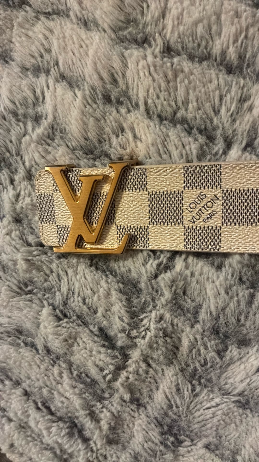 Authentic Louis Vuitton Men's Check Pattern Belt Beige White LV Buckle