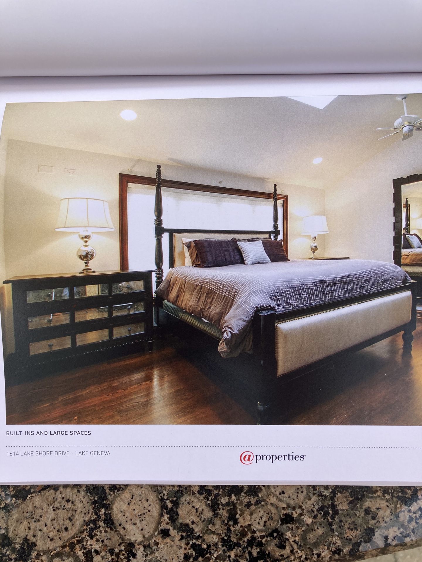 2 Guild Black Dresser with mirrored drawers. In Good shape. 47Wx21Dx36H. King headboard/footboard black painted wood 4 poster, gouged headboard posts are 88H, headboard is 57H, 80W, cream leather and You don’t have to wait weeks to have your furniture in your home!