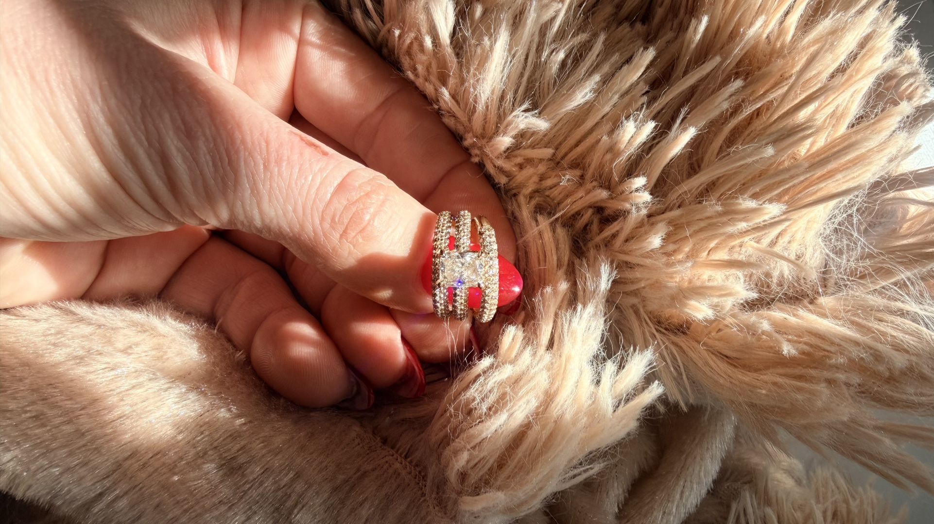 Ring breakdown: • Center stone: 1.1-carat radiant-cut diamond. Radiant cuts combine the sparkle of a round with the clean lines of an emerald cut, so you get maximum brilliance with a modern, elegant shape. • Setting: The center stone sits in a yellow gold engagement band, which warms the diamond and makes it appear brighter and slightly larger. • Wedding bands: Two diamond-pavé wedding bands, stacked—one on each side of the engagement ring. This creates a balanced, layered look and adds extra sparkle without overpowering the center stone. Overall look & vibe: • The stack gives a luxurious, cohesive, and timeless appearance. • The radiant cut is bold but refined—perfect if you want sparkle with structure. • The trio together reads intentional and elegant, not bulky. I do not have the paperwork but if you would like to get appraised I am open to it. $3800 pick up in Marietta