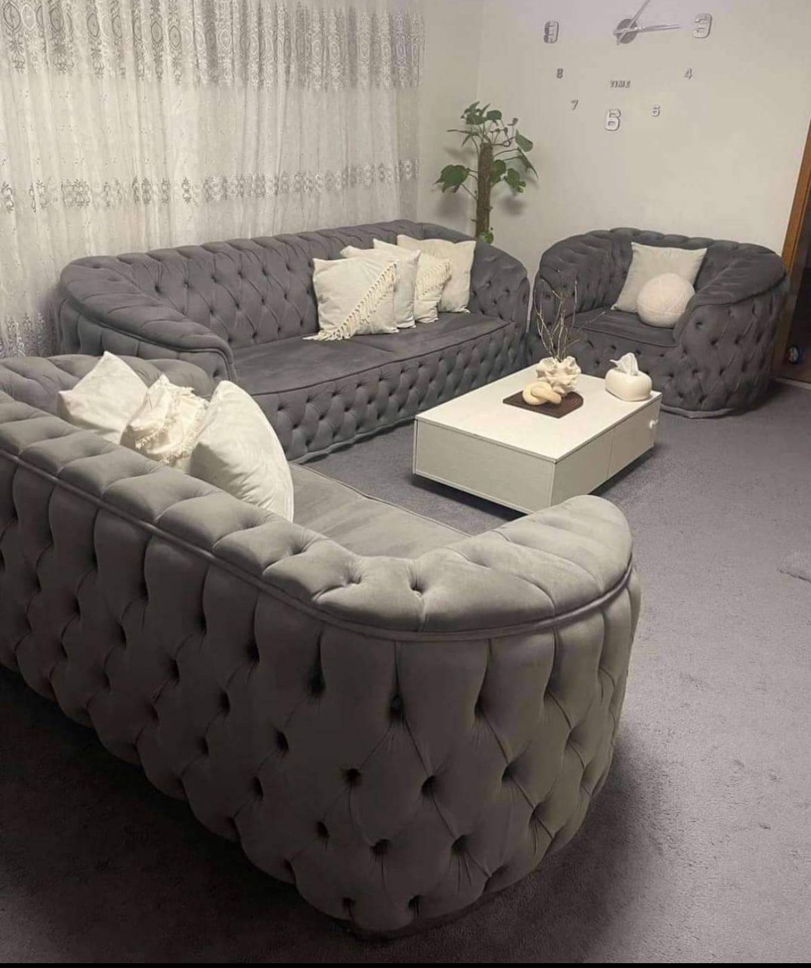 Sofa Set ( Tufted Gray Velvet ) No Credit Needed Same Day Delivery