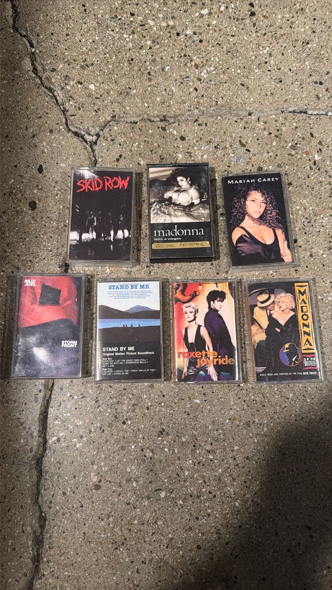 CASSETTE TAPES 5 EACH SKID ROW, MADONNA, BILLY JOEL, ROXETTE, MARIAH CAREY, STAND BY ME SOUNDTRACK MUSIC