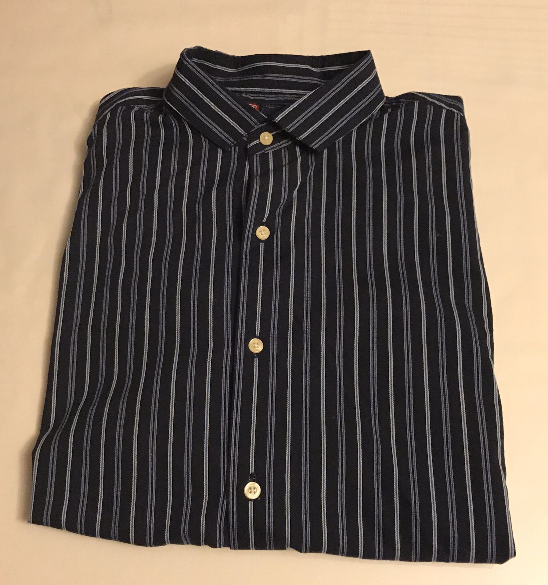 Great condition only worn a few times CHAPs Blue-Black/White Stripe Burton-Down Shirt Size XL (18/20). Very nice with Dress Pants or a pair of Jeans. Smoke-free Home. Bundle with other items I’m selling and save $$$