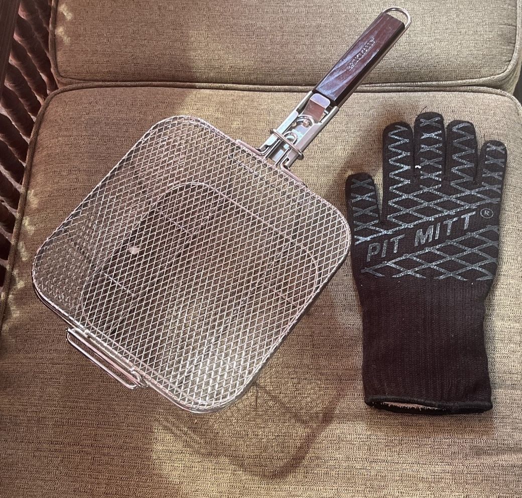 New Large Grilling Basket And Like New Barbecue Pit Mitt