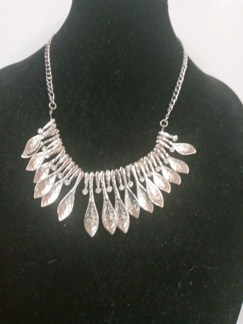 Vintage Silver Tone necklace,This stunning silver tone leaf necklace adds a touch of elegance to any outfit. Perfect for any occasion.Rare,for a unique outfit.