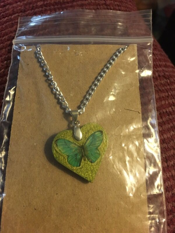 Wood heart with butterfly's necklace