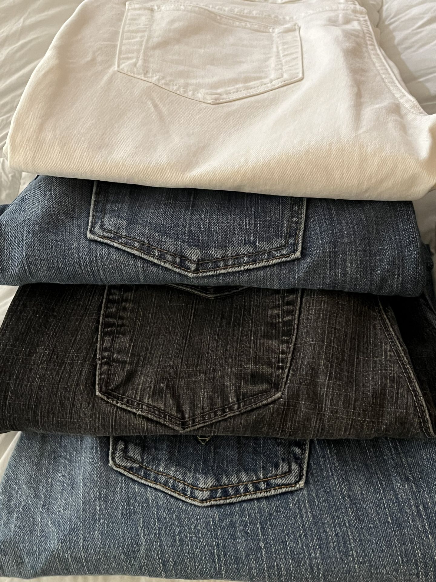 20 pair of women’s jeans, mostly size 8, a couple of 10s, skinny, straight and boot cut. Several corduroy Levi, Venus, DG2, Jessica Simpson, Old Navy, etc. all in great condition, some never worn. $10/pair or lot for $150.
