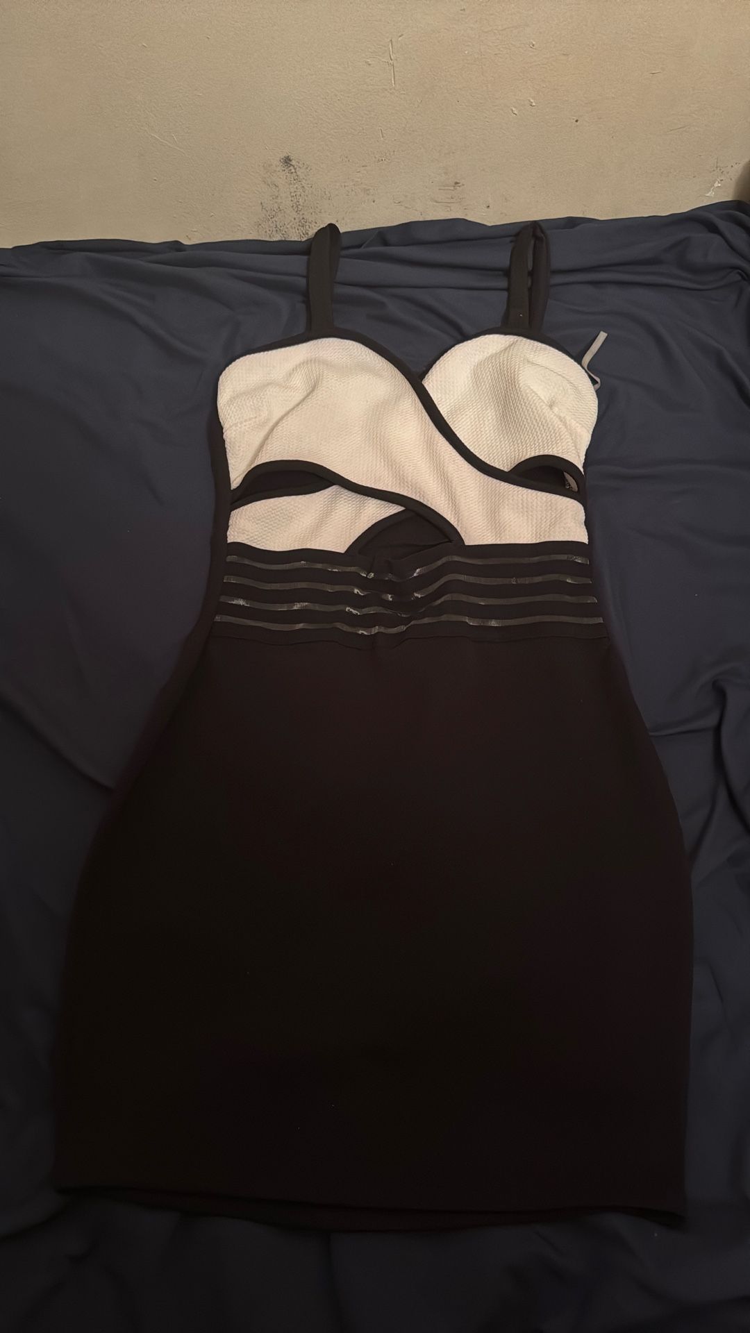 Gently Worn Black And White Crossover Bandage Dress Size Small Excellent Condition