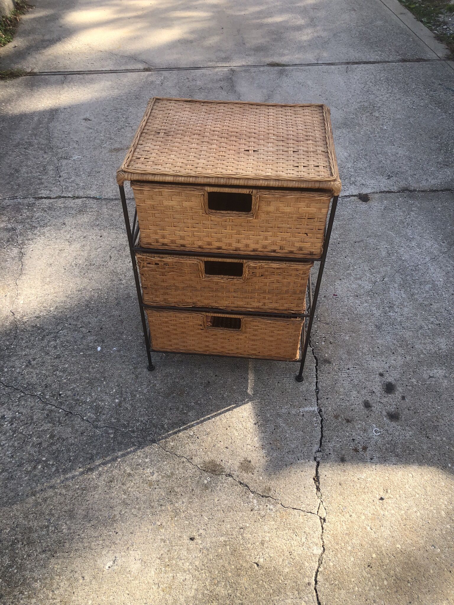 A cute wicker storage unit with three drawers! It's perfect for adding a touch of natural style to any room. The drawers provide ample space for organizing your belongings, and the wicker material gives it a warm and inviting look.