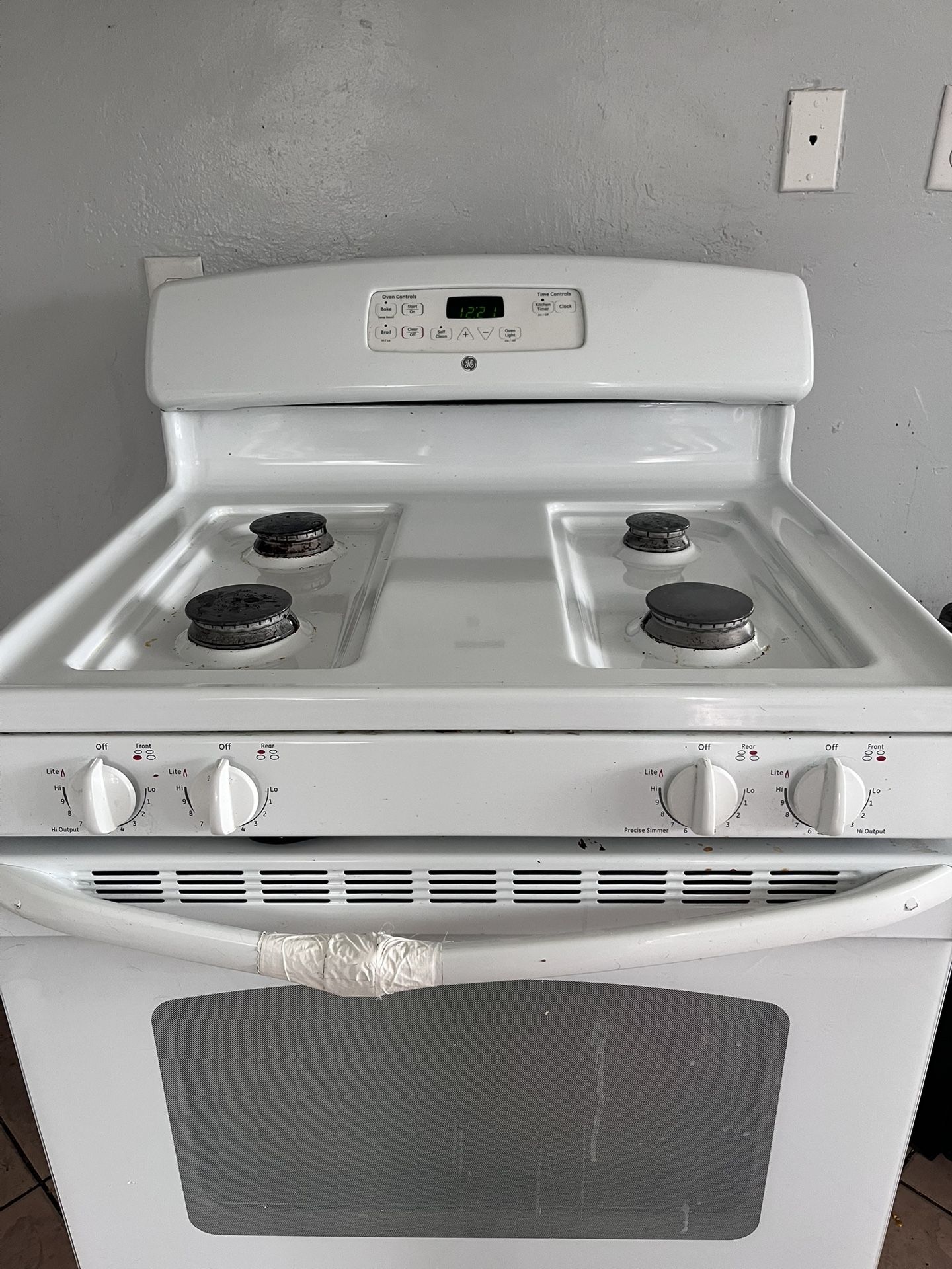 Everything works has all parts Oven works. Door handle is broken but can be replaced Moving need it out today