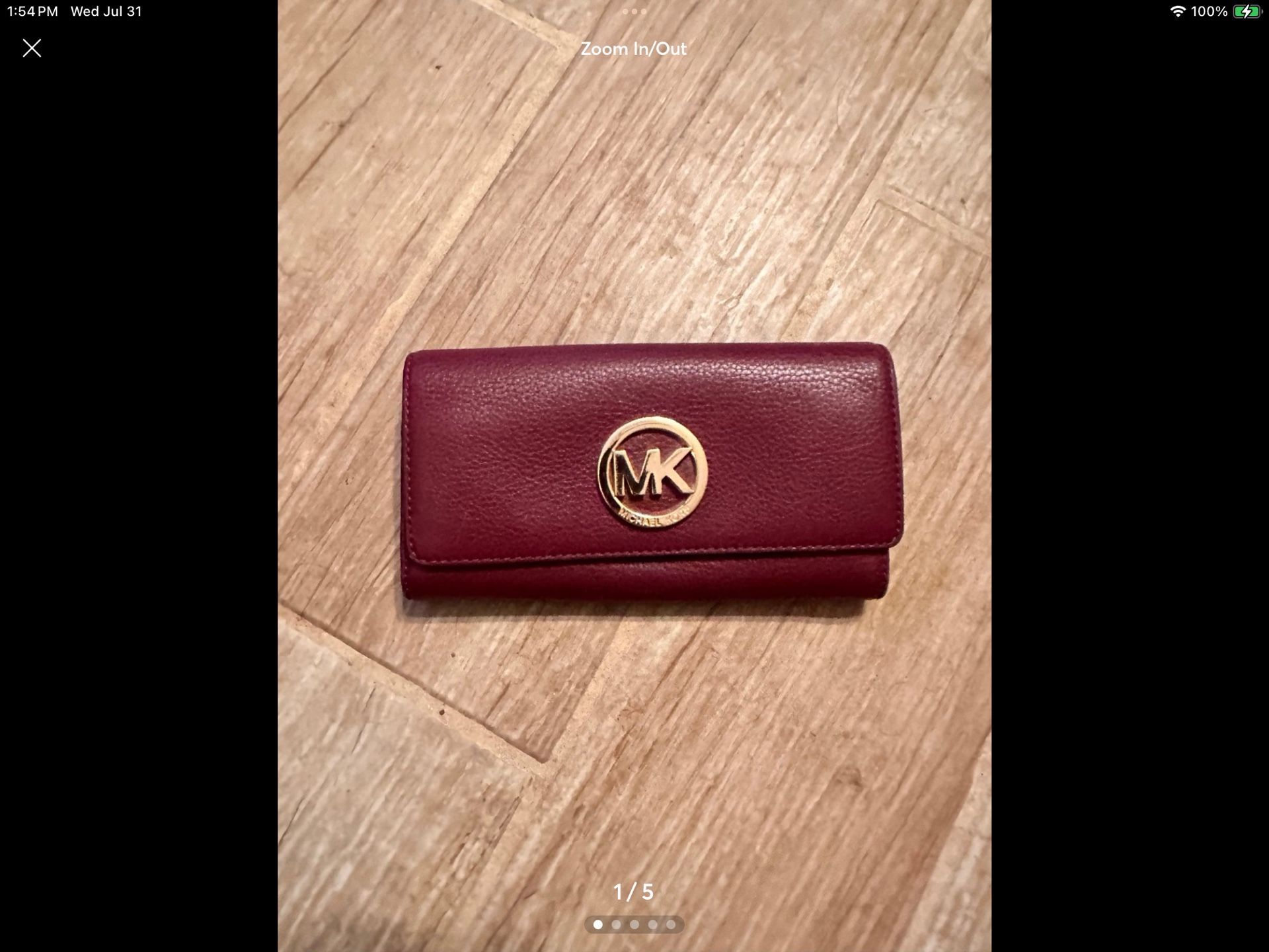 Michael Kors Burgundy Wallet. Item is preowned but in good shape. Asking $45.