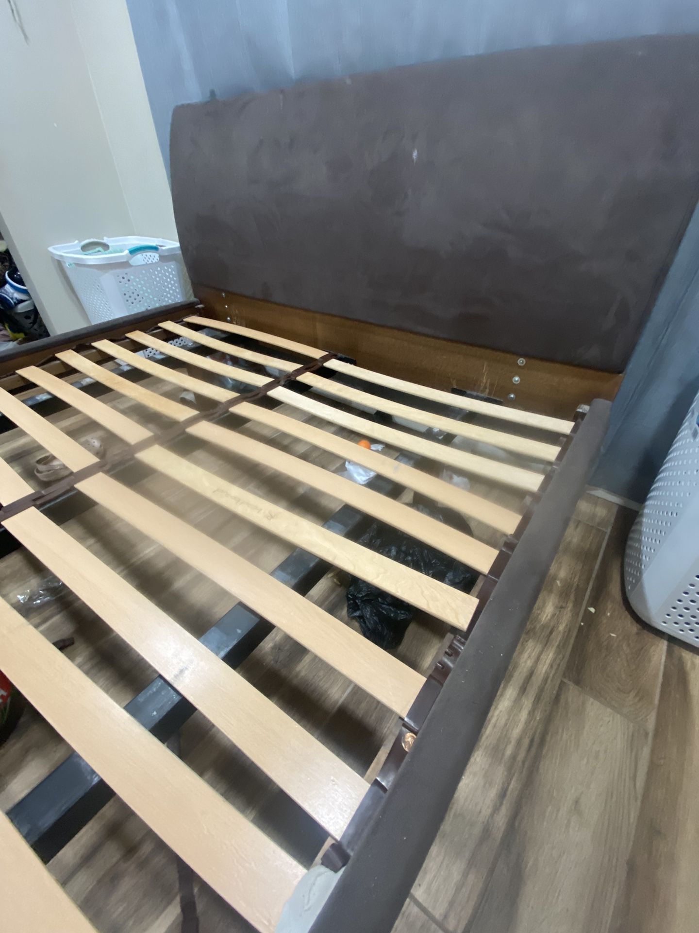 Queen size bed frame already disemboweled nothing missing or broken. Brown