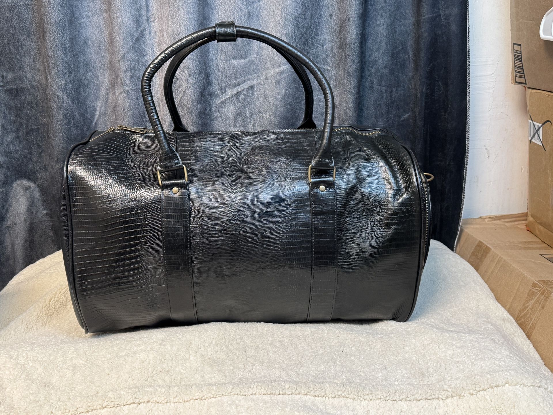 Genuine Leather Crocodile Texture Duffle Bag Black Travel Gym Carry On Weekender
