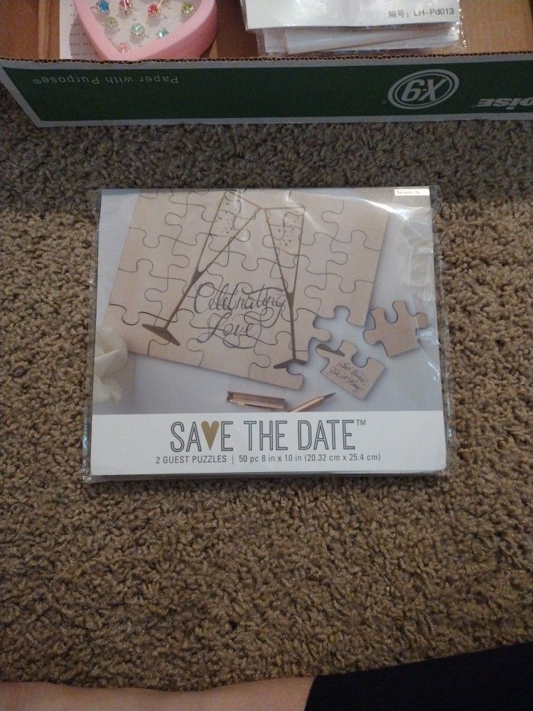 Includes 2 wooden puzzles; 100 pieces total. Really unique and special wedding or wedding shower guest book. Whole puzzle could be displayed, or the pieces kept in a special box from the big day ❣️