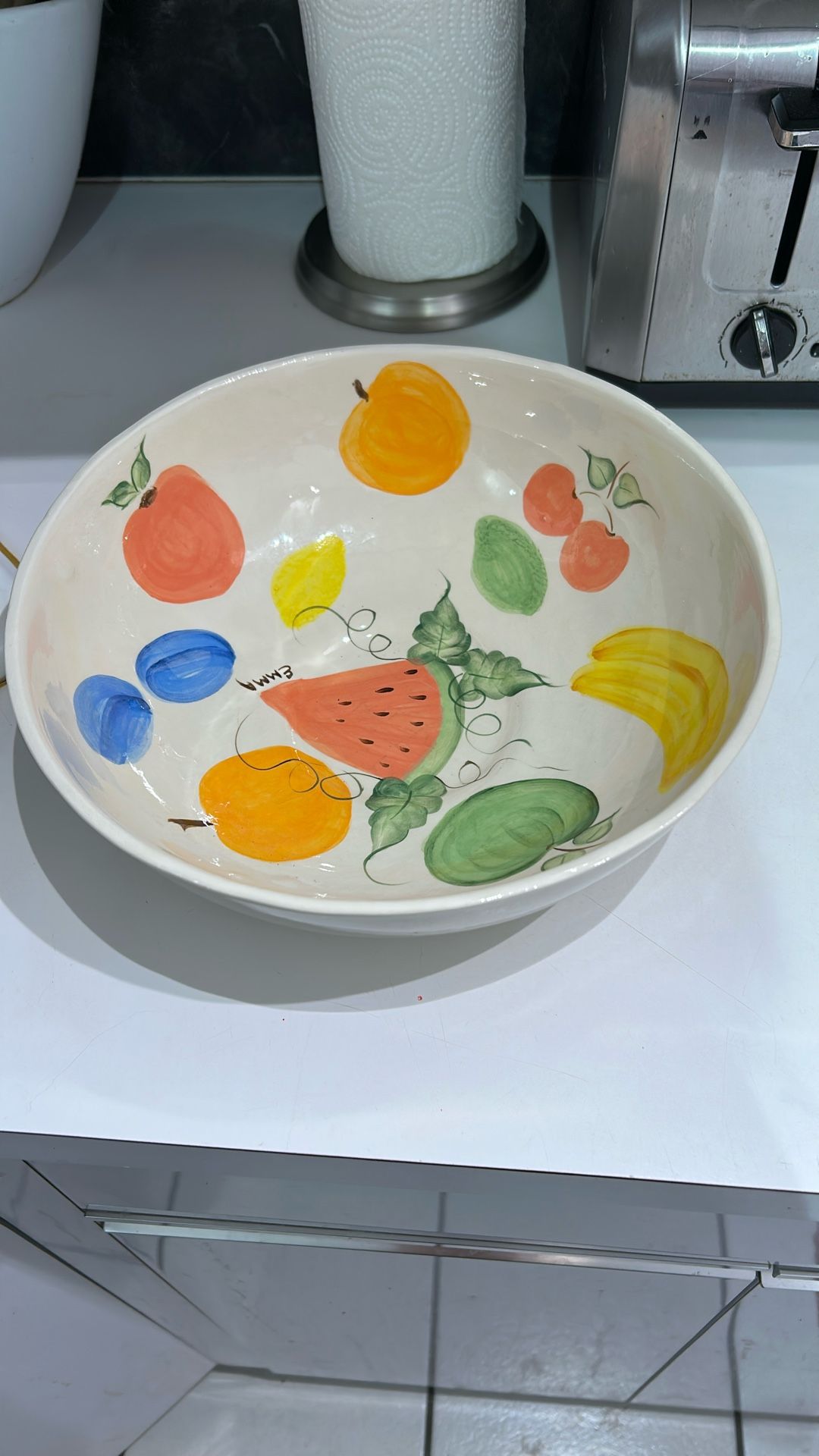 10 inches and 3 1/2 inches tall hand painted with various fruits.