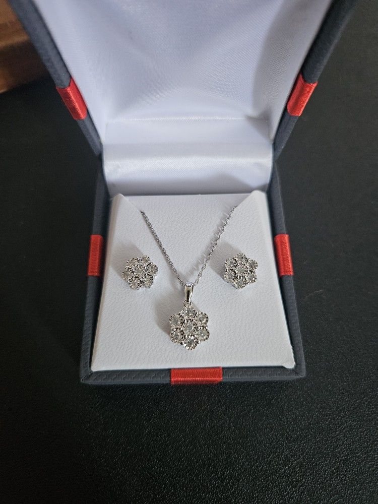 1/2 Cttw Sterling Silver Diamond Pendant Necklace And Earring Set