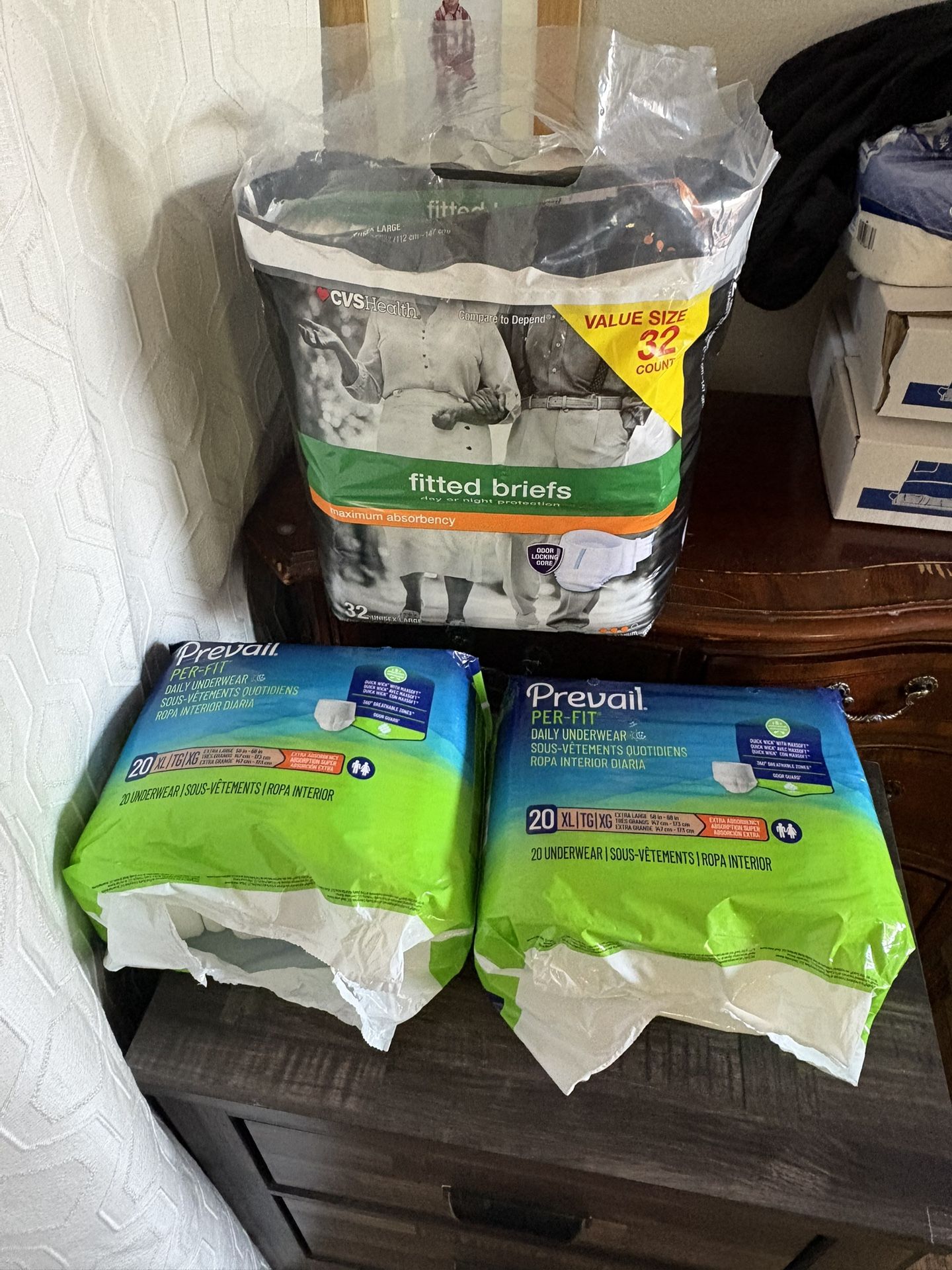 Son 65 pañales en total La bolsa negra contiene 25 se tomaron solo algunos 2 bolsas verdes una la abrí para ver el tamaño pero están completos y muy limpios me localizo Forest Hill 76140