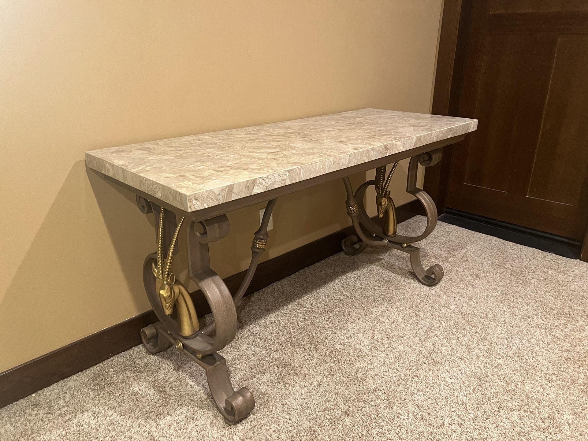 Like new condition. Decorative table. Dimensions 5 ft wide x 2 ft deep x 32.5 in tall