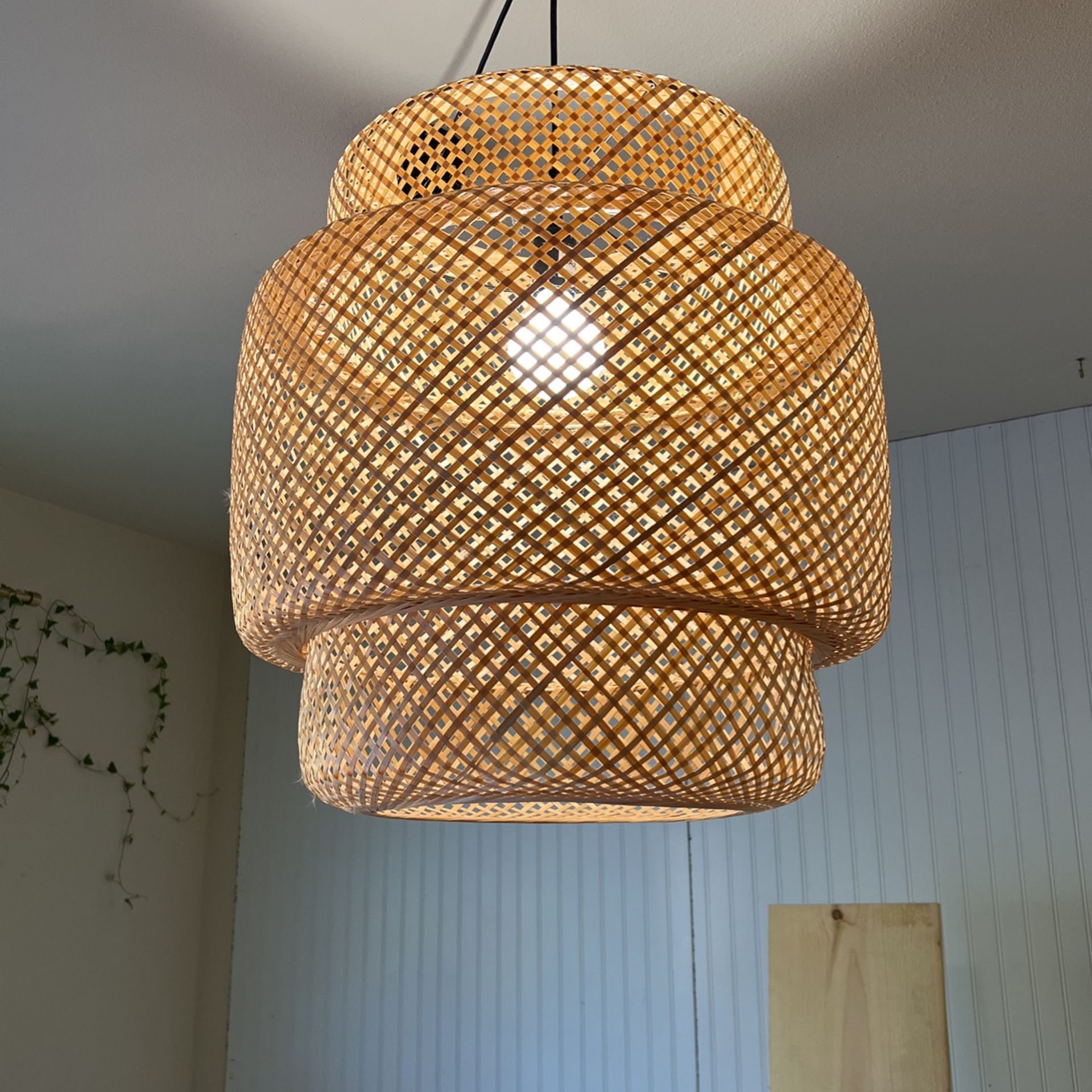 Boho light fixture from ikea! Has worked perfectly, just changing our style. Woven rattan wicker bamboo bohemian Modern