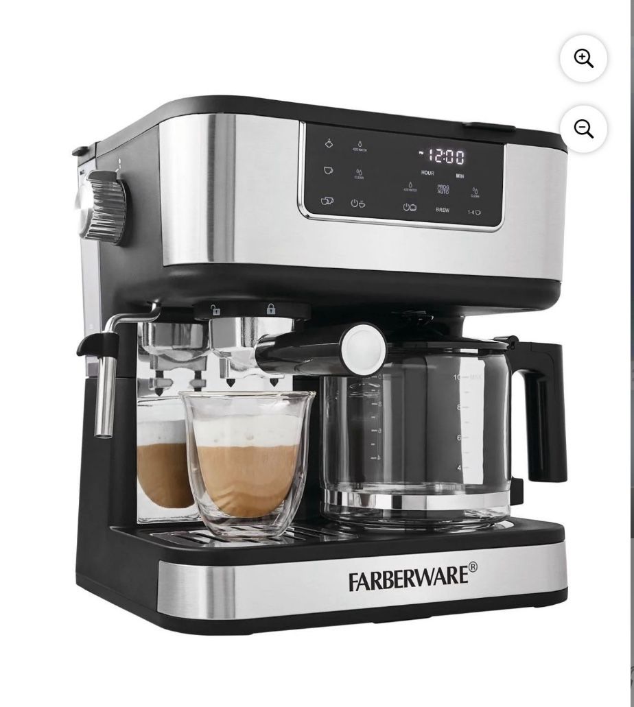 Farberware Dual Brew, 10 Cup Coffee + Espresso, Black and Stainless Finish, Touchscreen Display, New