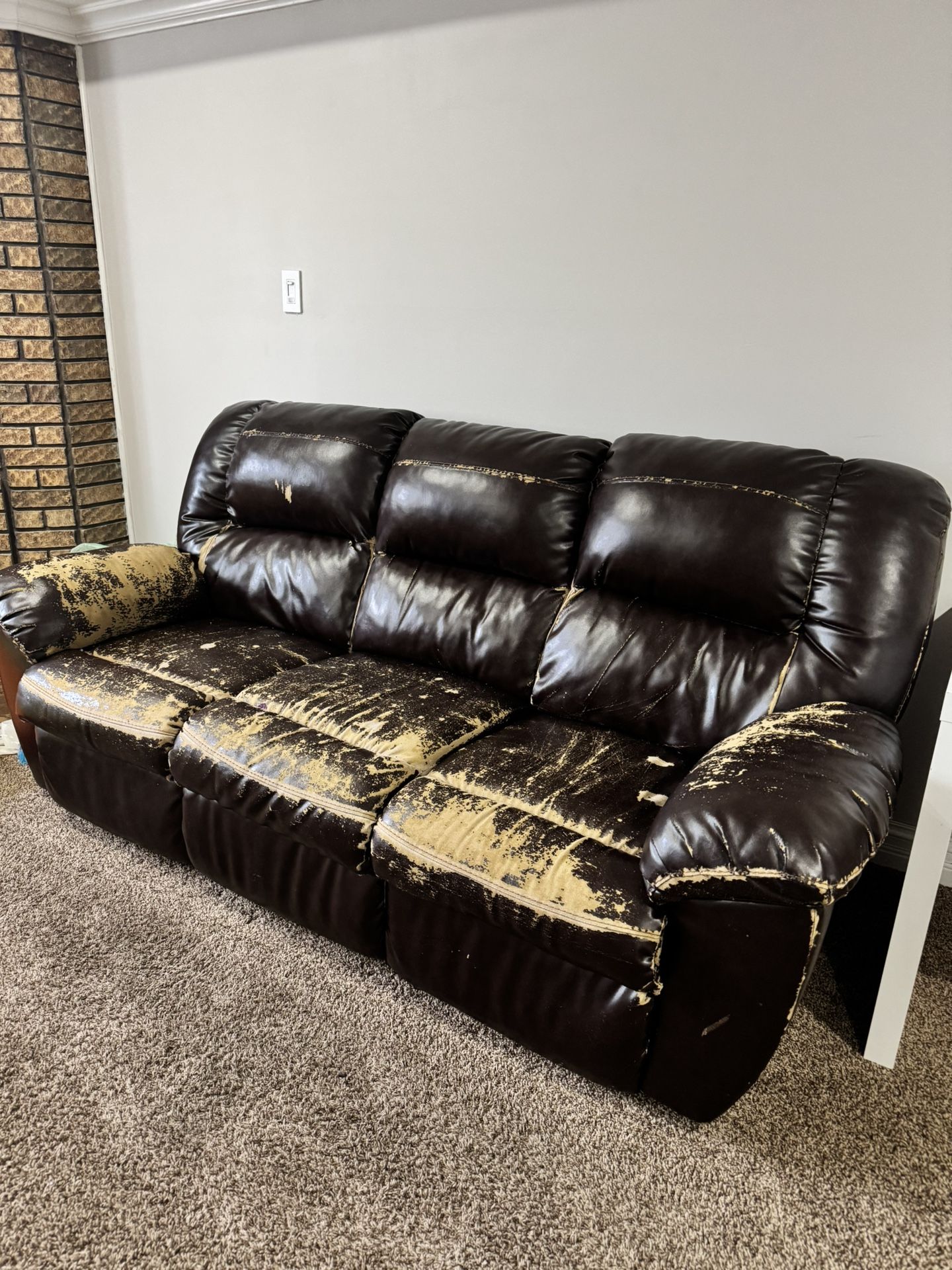 Reclining couch FREE!! Must have help carrying it and loading it. It’s a reclining couch which is pretty heavy. FREE TO FIRST COME FIRST SERVE. NO HOLDS Need gone asap