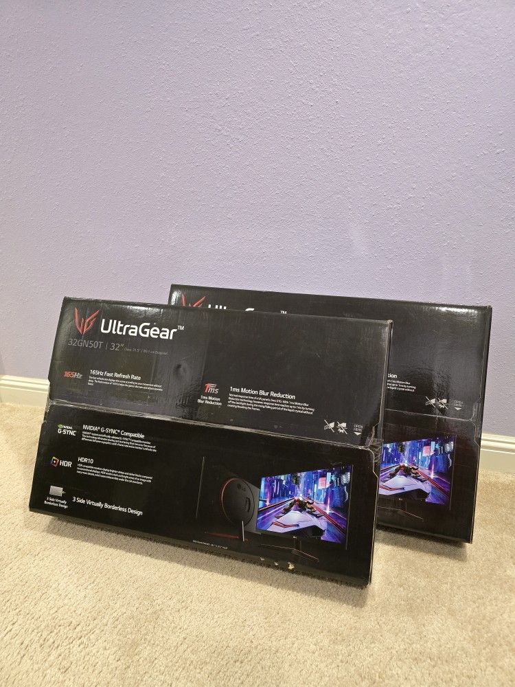Two LG 32" monitors (32GN50T) and a free desk arm. They are like new, in their boxes, and work perfectly, I just don't need them any more. Monitors link on Amazon: https://offerup.com/redirect/?o=aHR0cHM6Ly9hLmNvL2QvZnJ6aTF1aw== Monitor arm link: https://offerup.com/redirect/?o=aHR0cHM6Ly9hLmNvL2QvZ2VDcnZWbw==