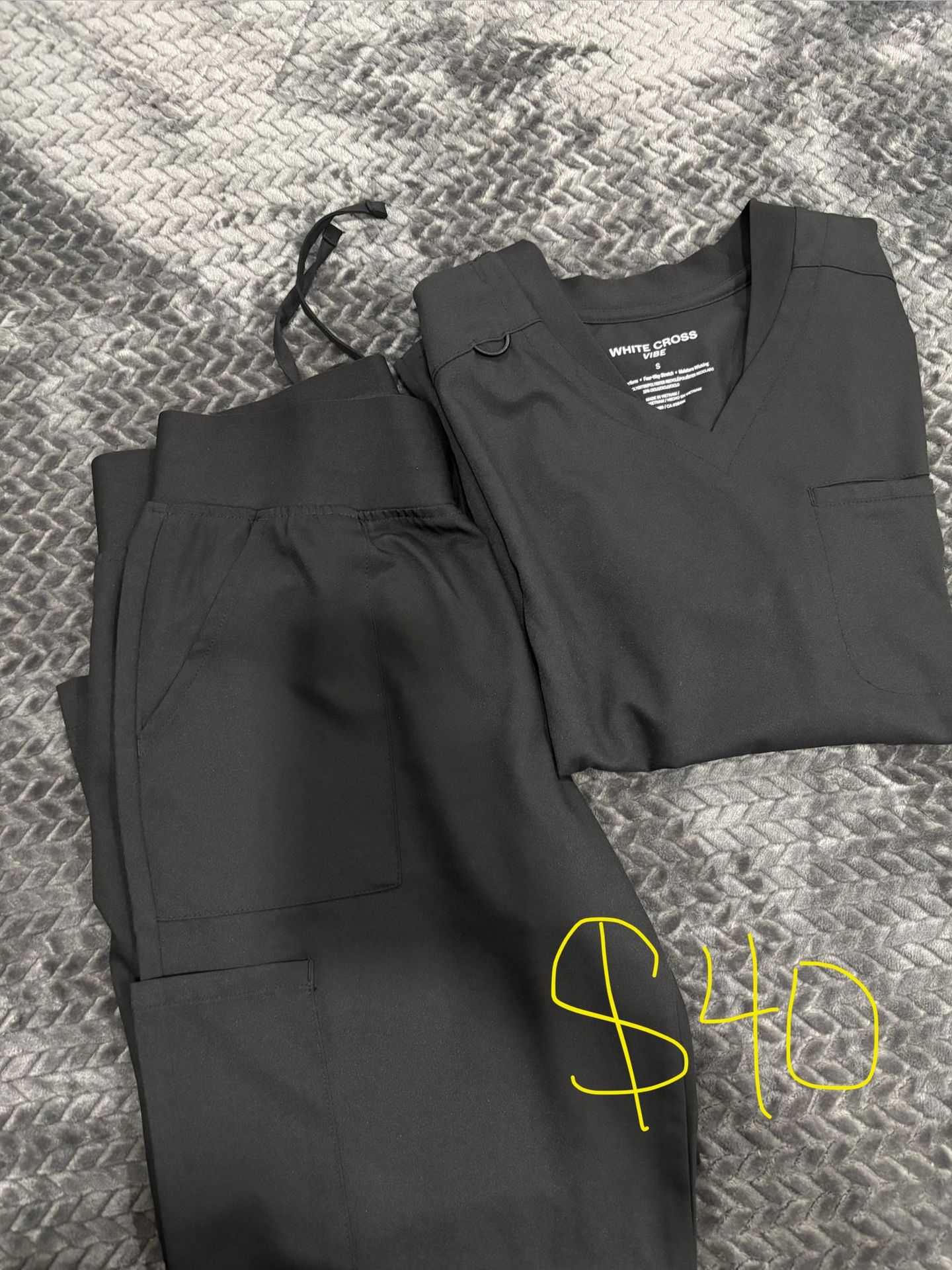 Sold as a set - White Cross never wore , brand new . Small top and Small Petite bottoms $40 - Greys Anatomy Small top and Medium Petite joggers $25 -Greys anatomy Xs top (fits like a small) and Small petite joggers $25 -Cherokee infinity scrub jacket . XXS but fits like a small. I have 2 of them $20 each