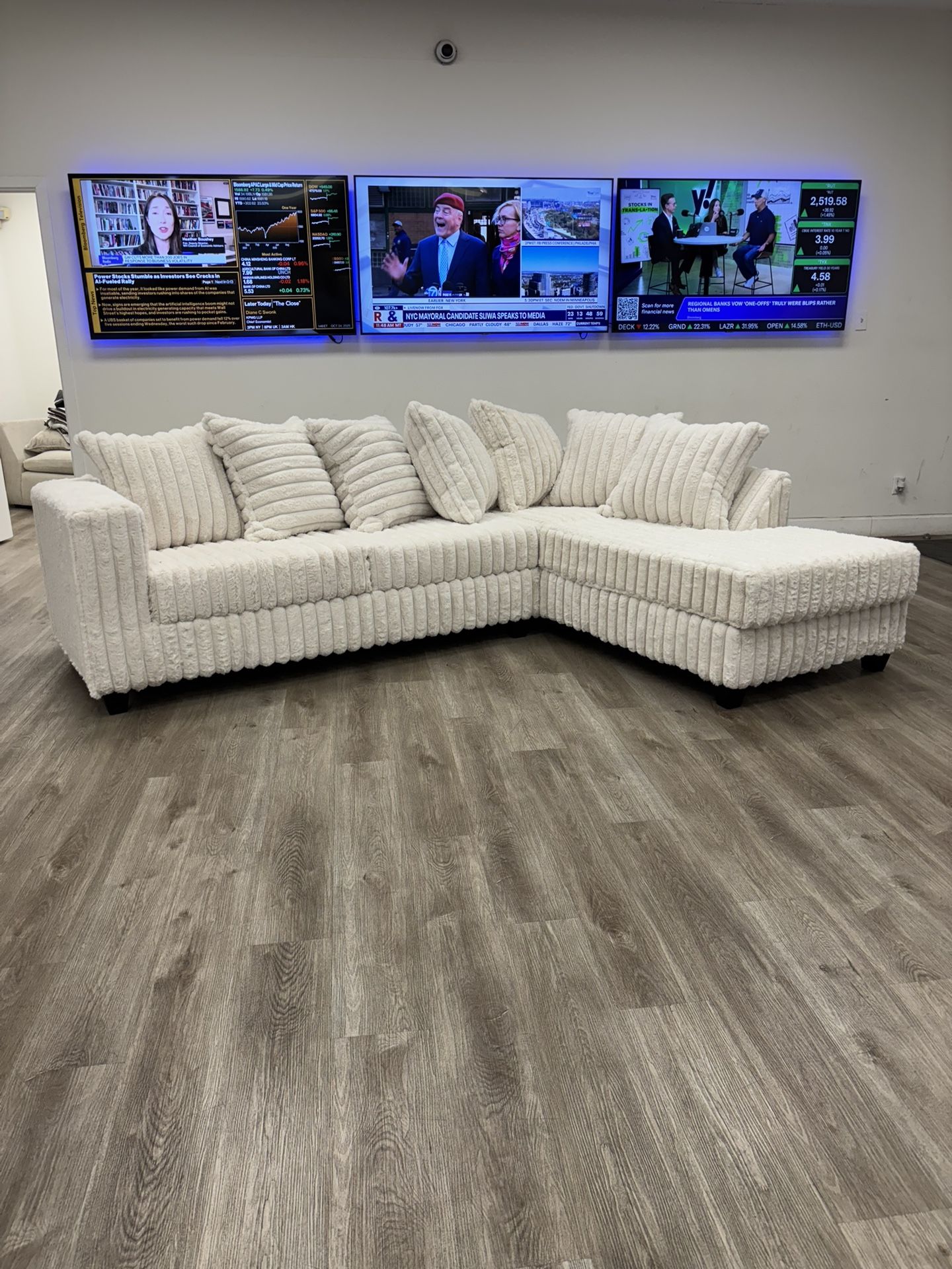 Beautiful beige fluffy sectional couch ✅Super soft and fluffy 🚚Delivery Available 💰 Financing Available Condition: New in Box 📦 Also available in; Black Chocolate Charcoal Navy Grey Schedule a time to Come see it or have delivery! Subject to tax