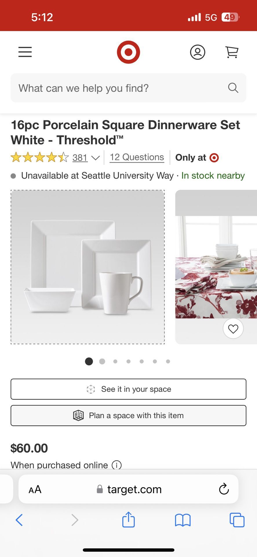 Sleek porcelain dinner set Set of 4 Store price $60 Also have round bowls, glasses, mugs, spice rack, fruit holder, and other kitchenware things needed for for a 1st apartment/home. All in great condition. Everything is packed in my storage unit which is why its hard to take pictures of each item. Send me a message if you’d like to see the other things in person. Willing to give a bundle deal *located in Kirkland*