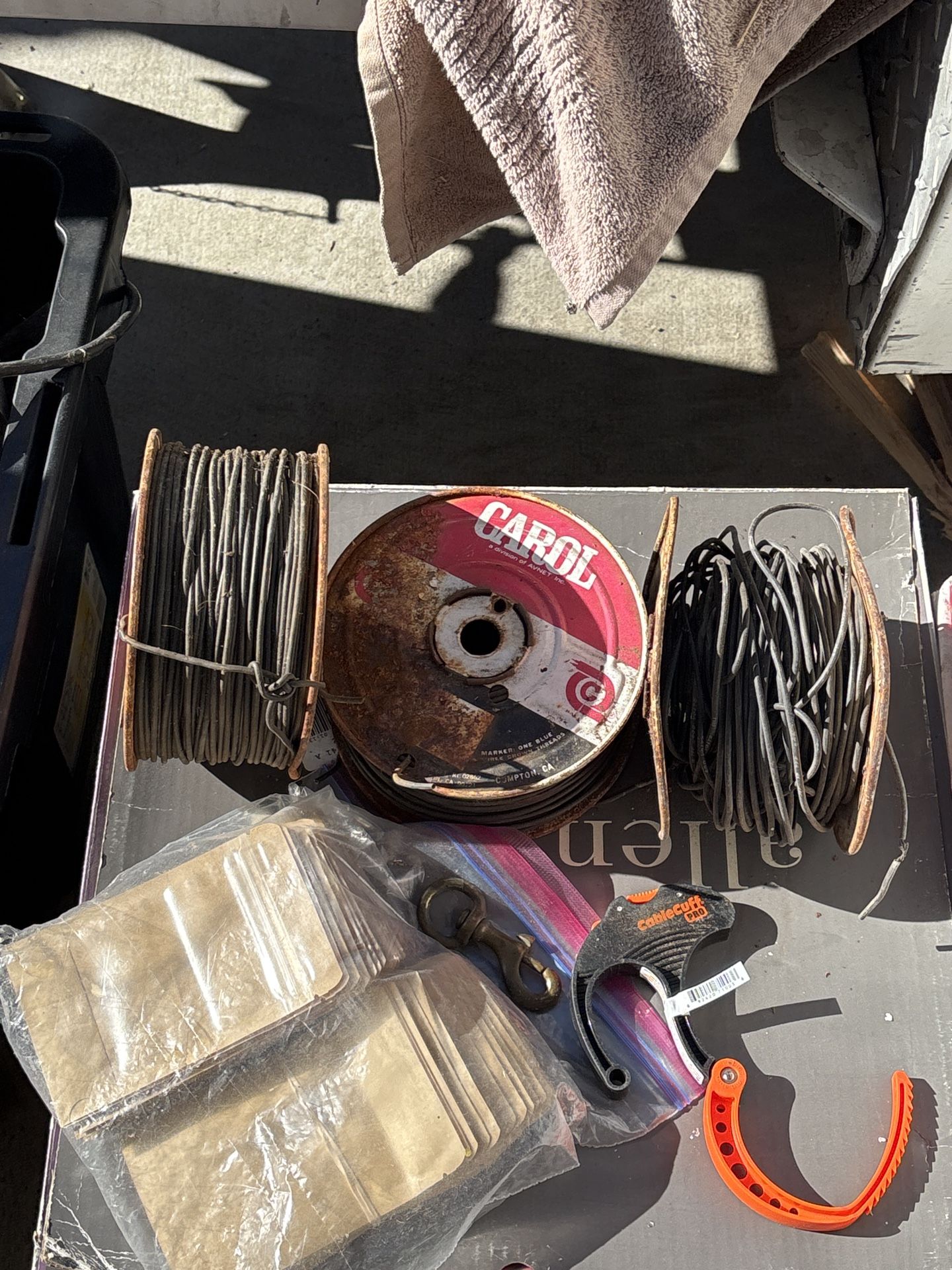 Selling 2 full spools + 1 half spool of low-voltage irrigation wire. 18-gauge solid copper, gray jacket. Great for sprinkler valves, timers, landscape lighting, and general low-voltage work. Included: • ✅ Two full rolls • ✅ One half roll • Approx. 500–600 ft total • Wire is in good usable condition • Spools have rust from storage , but wire itself is fine.