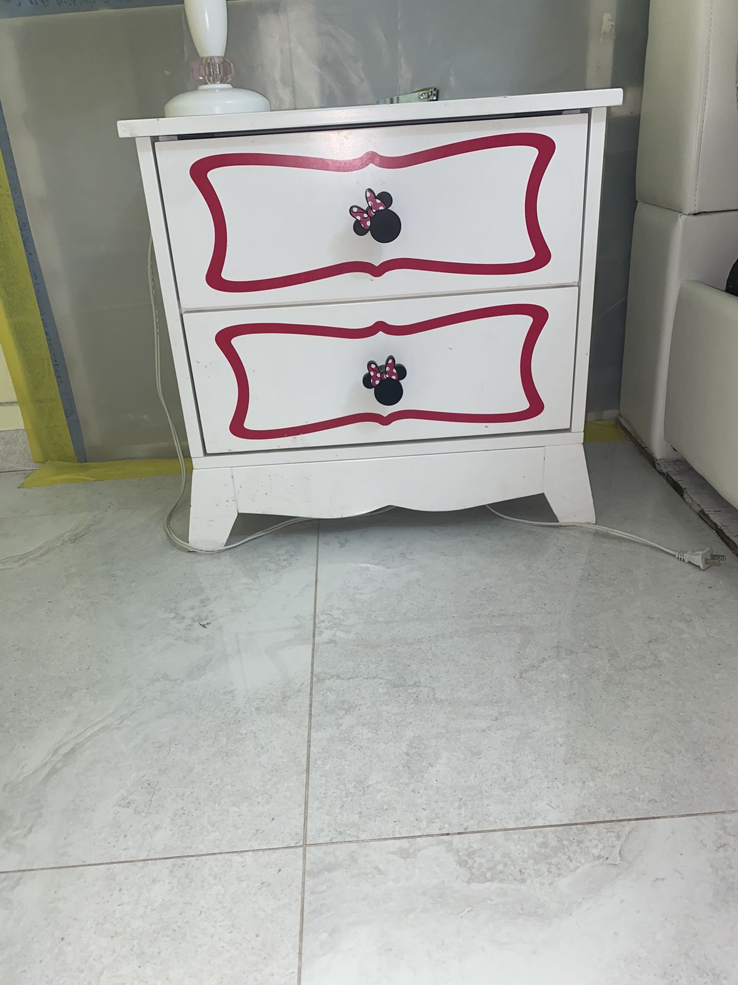 this will include the nightstand and the mirror (we can take the stickers off from the mirror if you’d like)