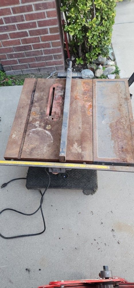 Craftman table shaw that works, it's been sitting around for awhile but will still work fine and can be cleaned up good. Comes with guid and an extra attachment to make the table longer. Also come with rolling stand with lockable wheels Wood working, carpenter, building materials, saw, blade,